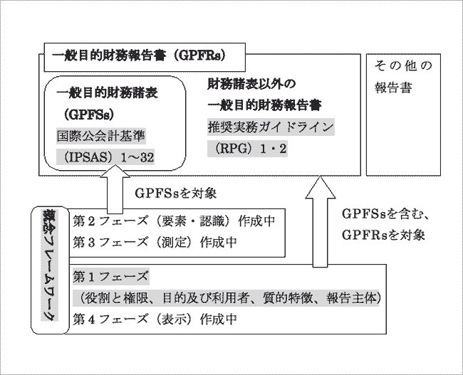 また、IPSASやRPGを新規に作成する場合、又は既存のIPSASやRPGを修正する場合の基礎として、概念フレームワークを作成・公表している。(2014年7月現在、第1章~第4章まで公表済み)