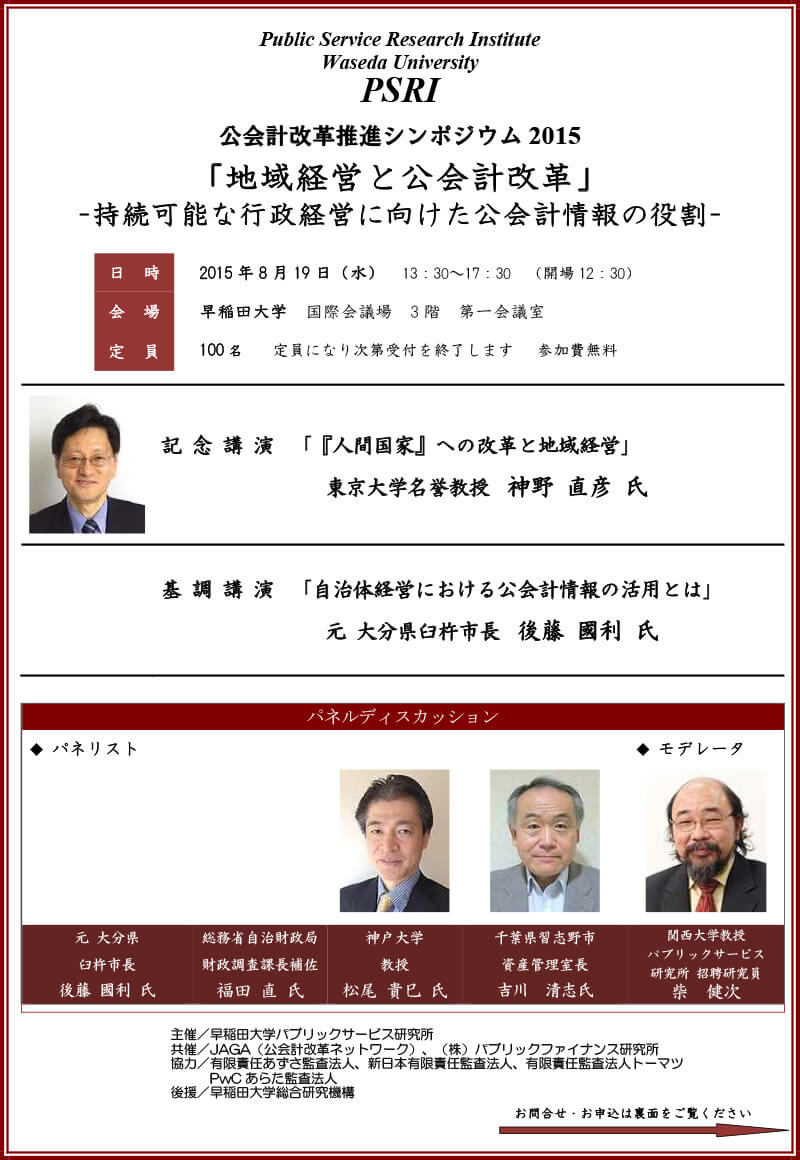 公会計改革推進シンポジウム2015「地域経営と公会計改革」