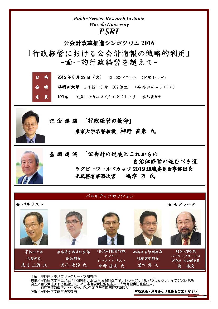 公会計改革推進シンポジウム2016 「行政経営における公会計情報の戦略的利用」